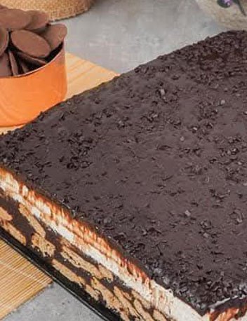 Kek Batik Indulgence dengan lapisan coklat premium, biskut rangup dan topping istimewa.