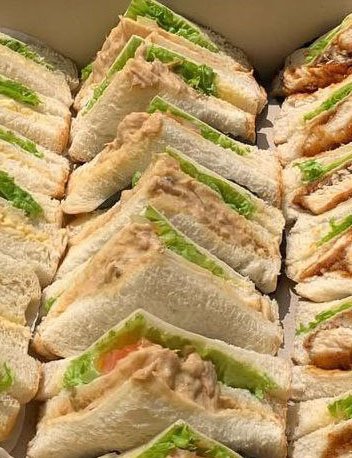 Sandwich Tuna daripada Alkawsar Delight dibuat segar setiap hari dengan roti lembut, isi tuna segar dan mayonis creamy. 1 Box mengandungi 21 keping sandwich, sesuai untuk majlis kecil, jamuan pejabat atau hidangan keluarga.